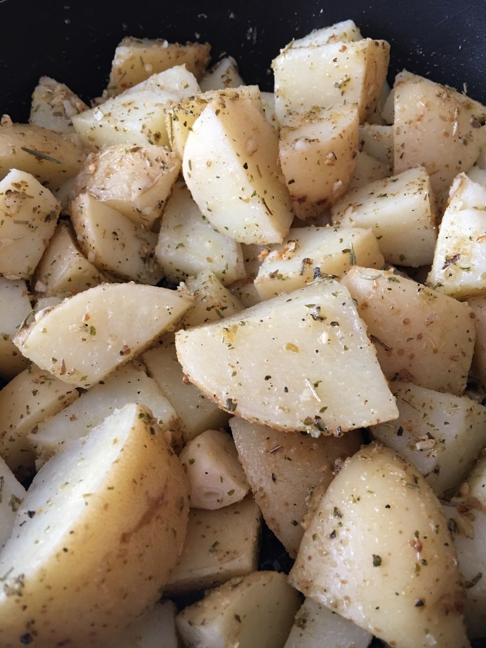- Poner el aceite y la mantequilla en un sartén, cuando se derrita la mantequilla, agregar los ajos, las papas, el Romero, sazonar al gusto, agregar el orégano y la sal al gusto. Mezclar y dejar freír hasta que se doren todos los ingredientes. Retirar del fuego y servir.