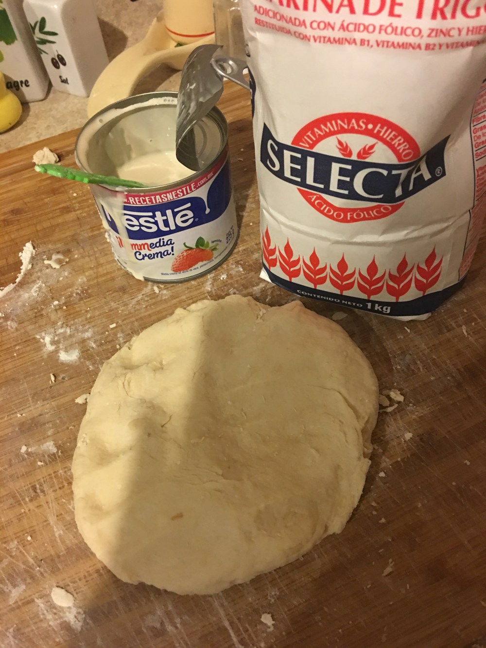 - Batir bien, incorporar la media crema necesaria, hasta que la masa sea manejable y que no se pegue en los dedos.