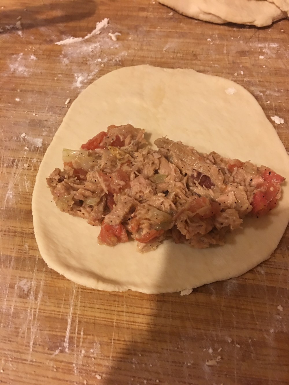 - Ya extendida poner el relleno de tu preferencia en el centro.