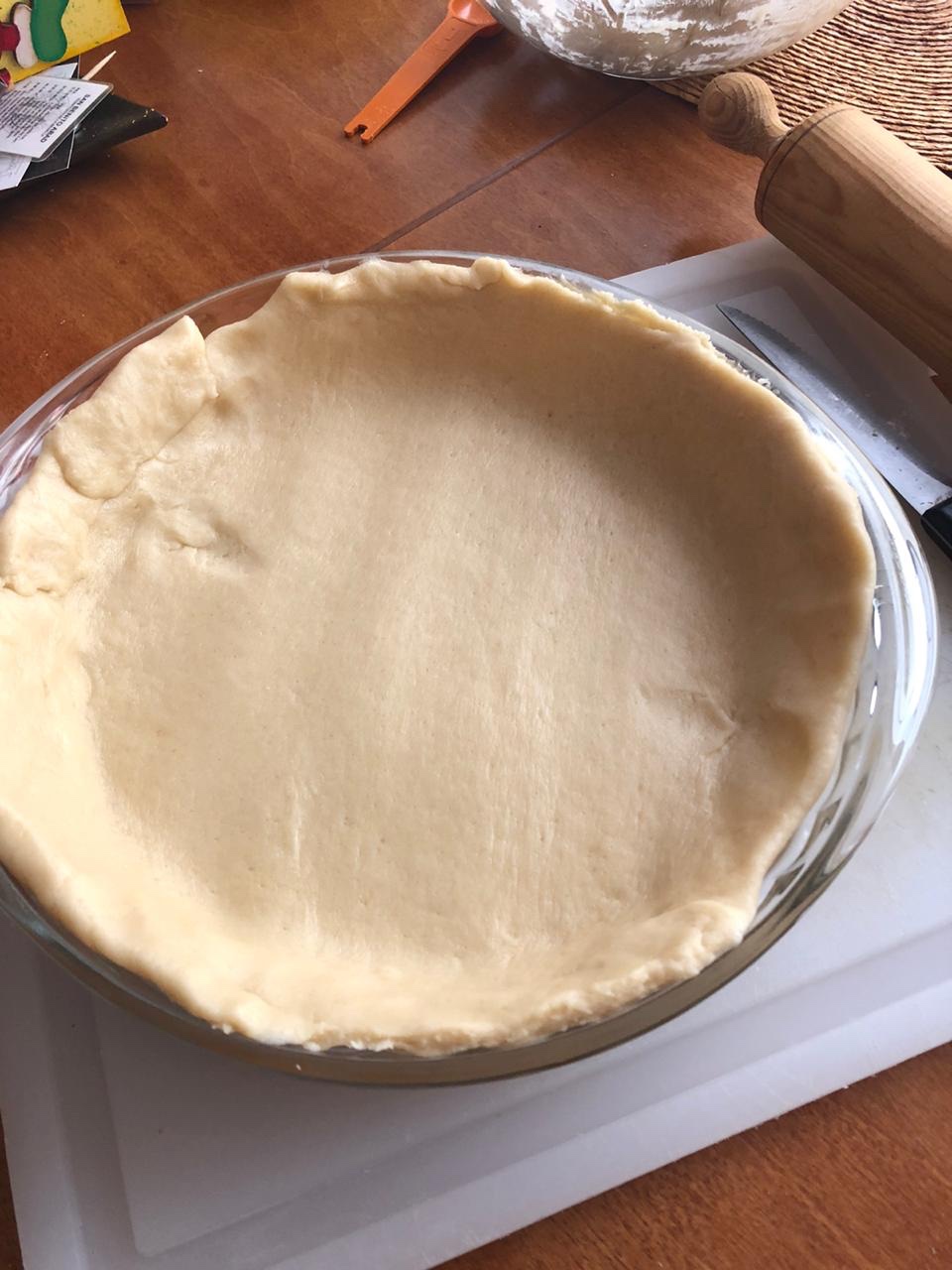 - Ahora extender la masa y ponerla en un molde para pay.