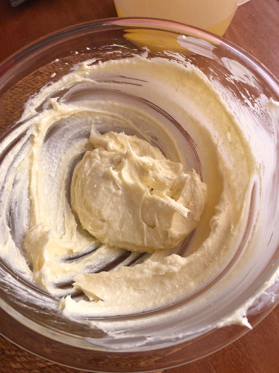 - Batir la mantequilla a punto de turrón, agregar el azúcar y la sal, seguir batiendo.