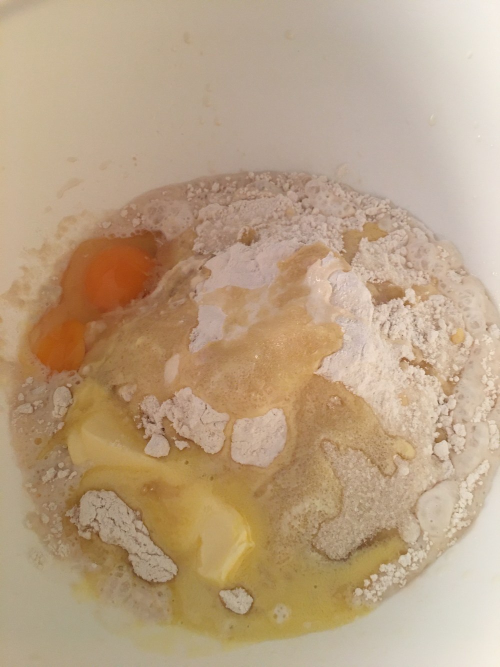 - Mezclar el sobre de la levadura en la leche tibia y 1 cucharada de azúcar, mezclar muy bien y dejar reposar 5 min.