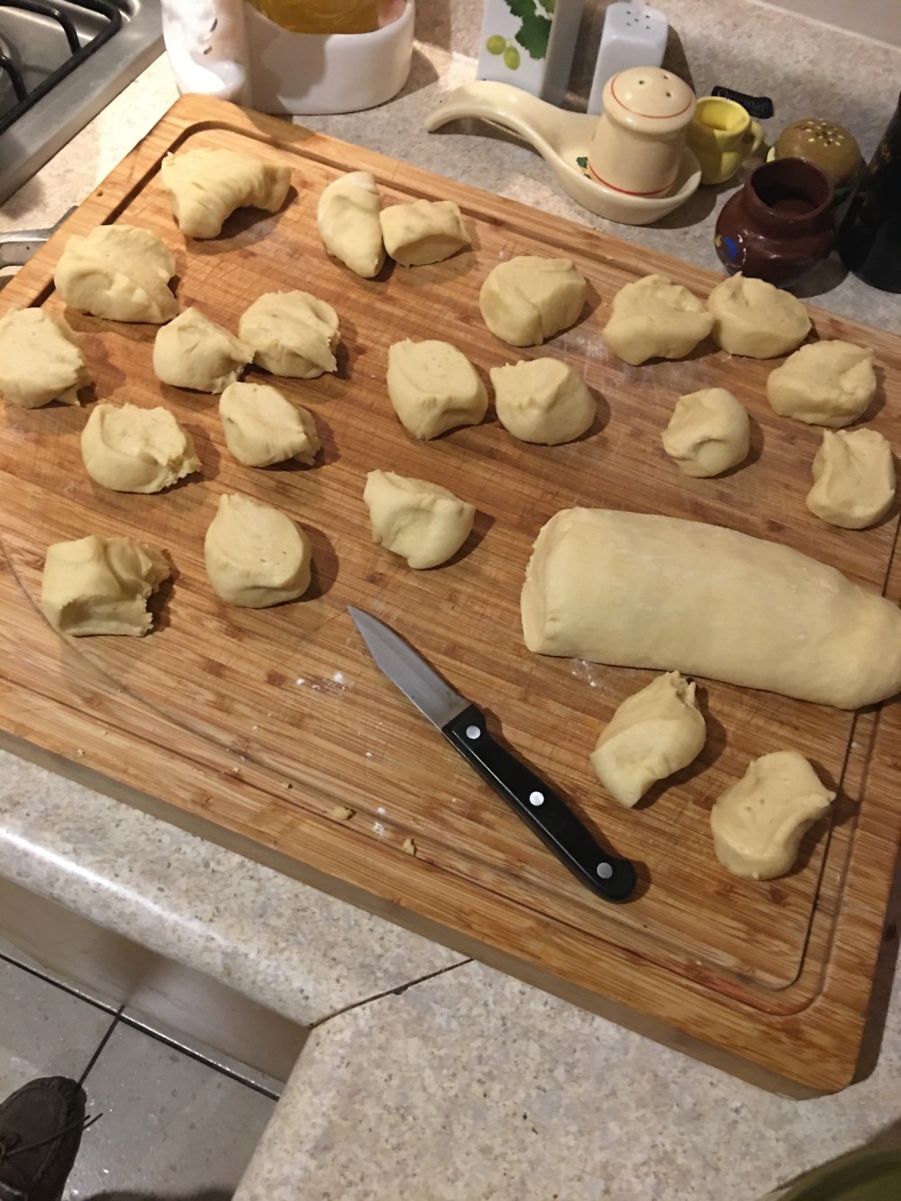 - Ya pasado el tiempo sacarlo y poner un poco de harina en la tabla, hacer un rollo y cortar la masa en partes iguales, esos serán los panecitos.