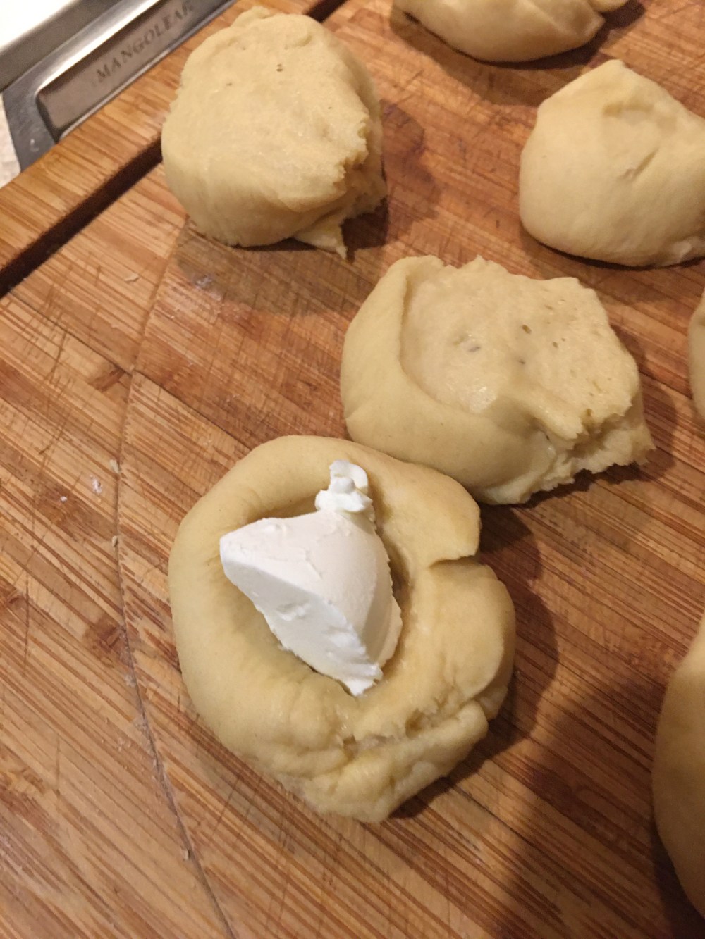 - Tomar cada porción y rellenarla del queso Philadelphia