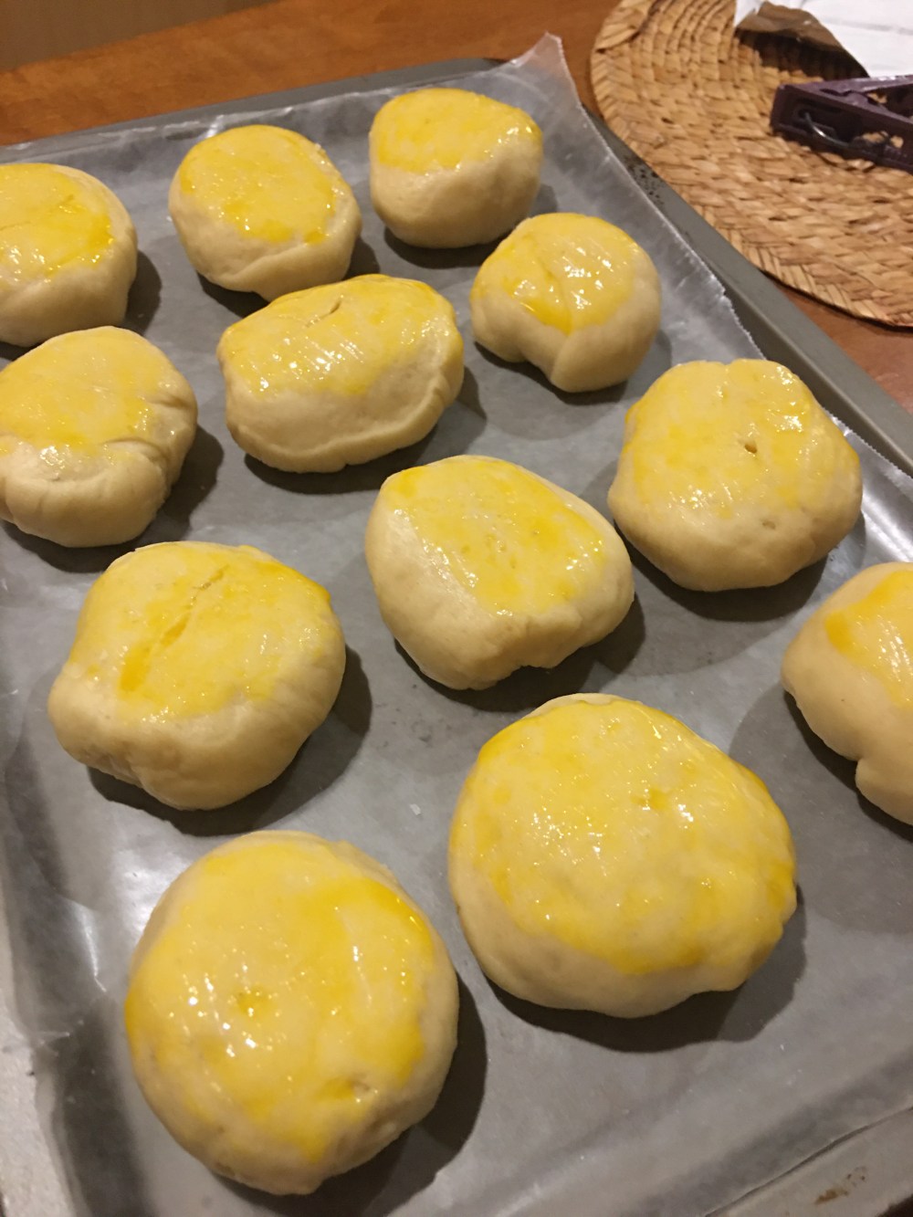 - Ir acomodando todos en una charola con papel encerado para que no se peguen los panes