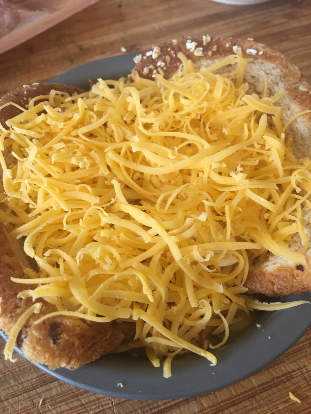 - Y encima agregar el queso chedar rayado