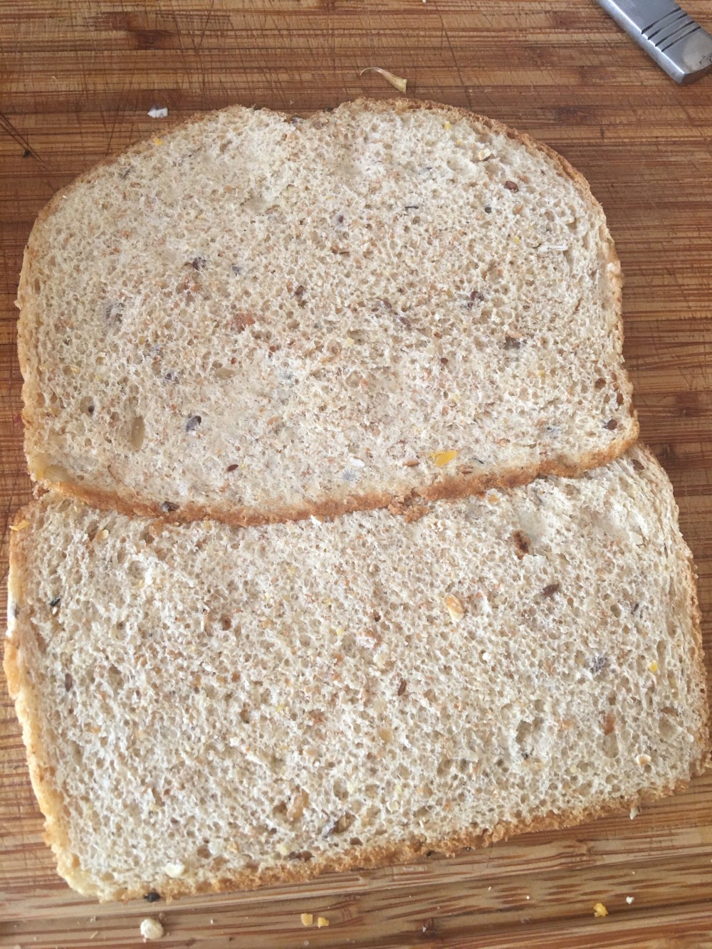 - Encimar dos piezas de pan integral.