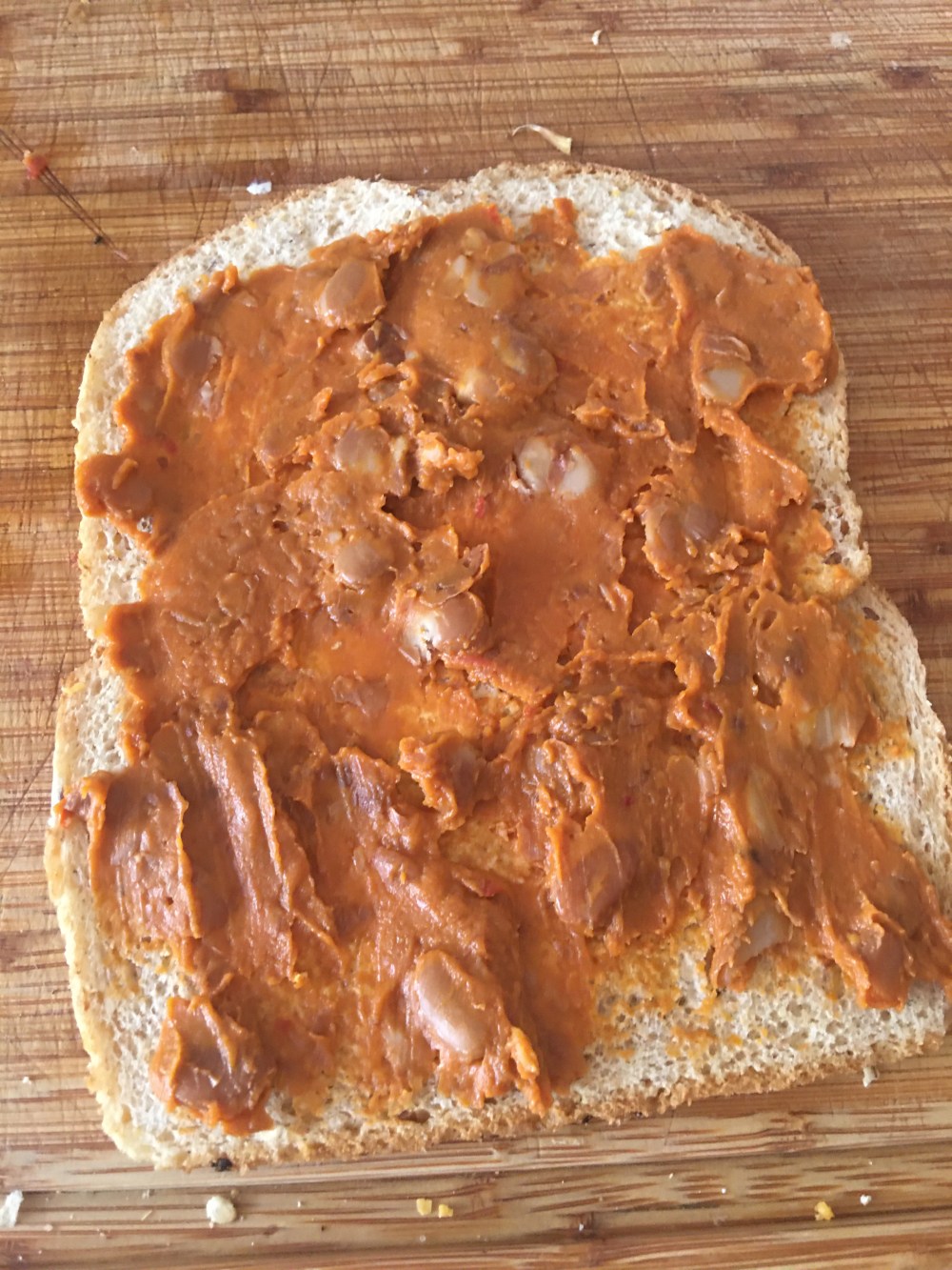 - Untar los frijoles puercos al pan.