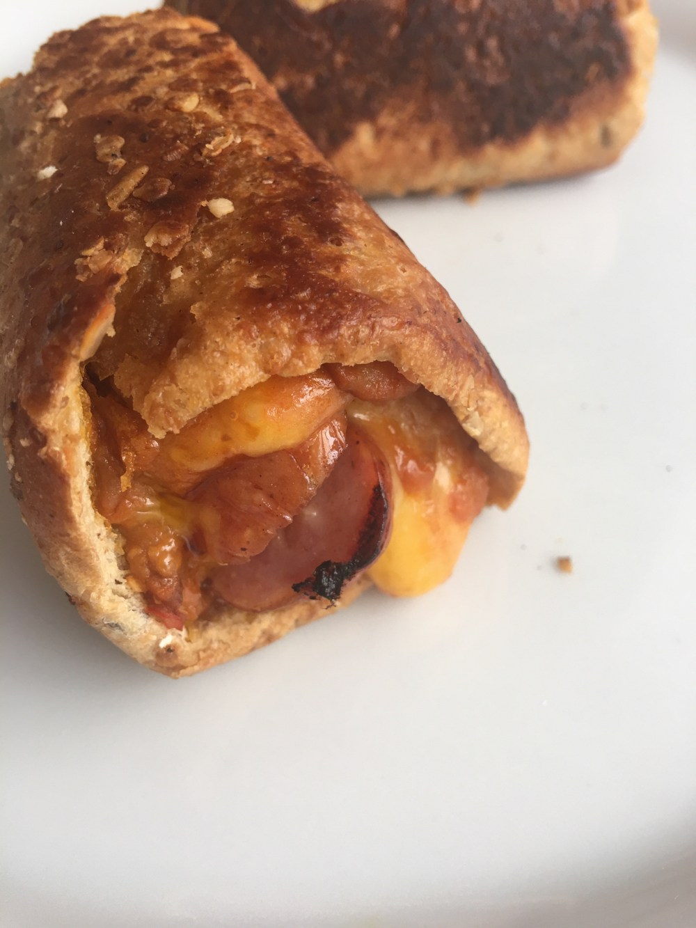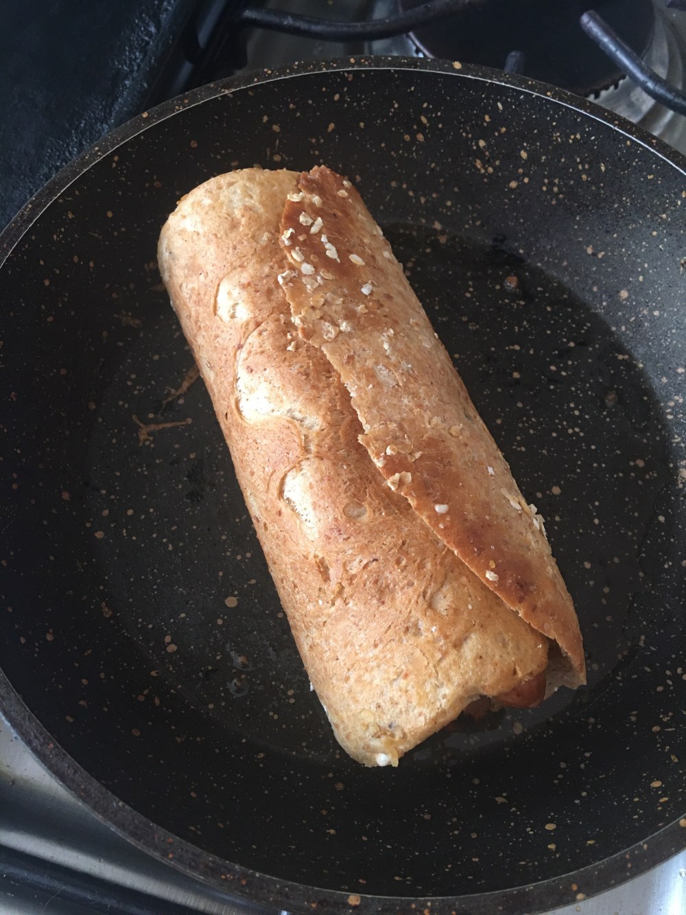 - Ahora si, enrollar el pan y ponerlo en el sartén con mantequilla para que se dore el pan y se derrita el queso.