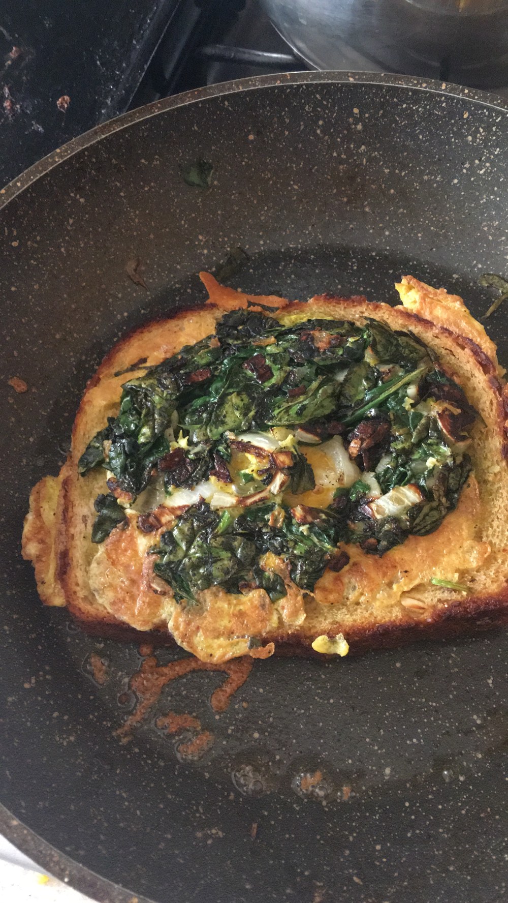 - Calentar un sartén con aceite, guisar el ajo, la cebolla y las espinacas.